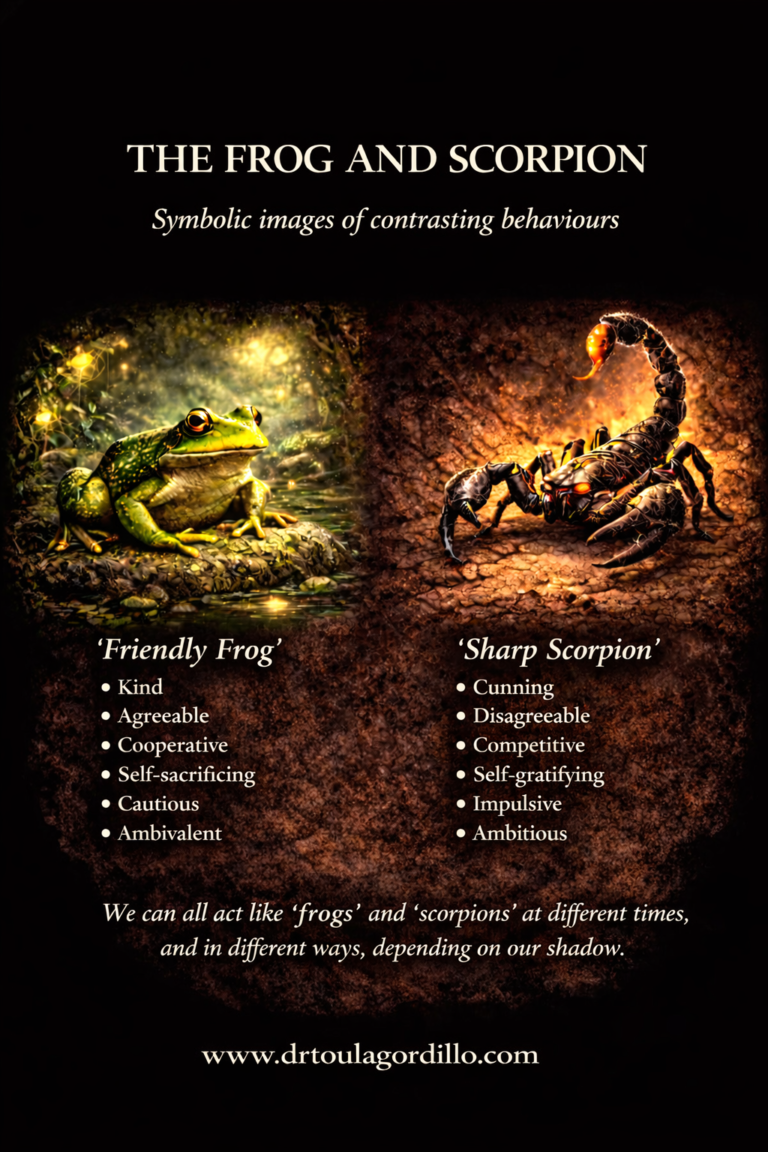 To develop greater insight and self-awareness, each book explores a different part of our inner world. First, we need to understand our Shadow House and how the symbolic ‘rooms’ work together. Next, we understand through the metaphors of the ‘frog’ and ‘scorpion’ in each room *. (For more information, click on the Read More button below each book)