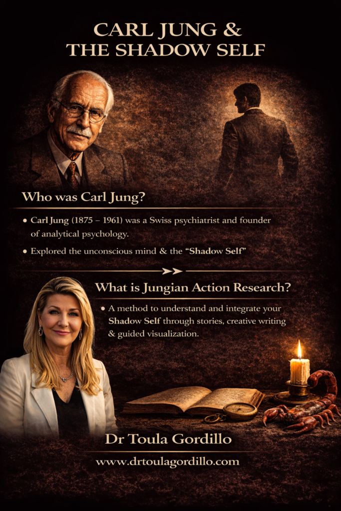 Building on Jung’s ideas, Dr Toula Gordillo developed Jungian Action Research (JAR). Her approach combines Jungian psychology with practical, creative methods for self-exploration.