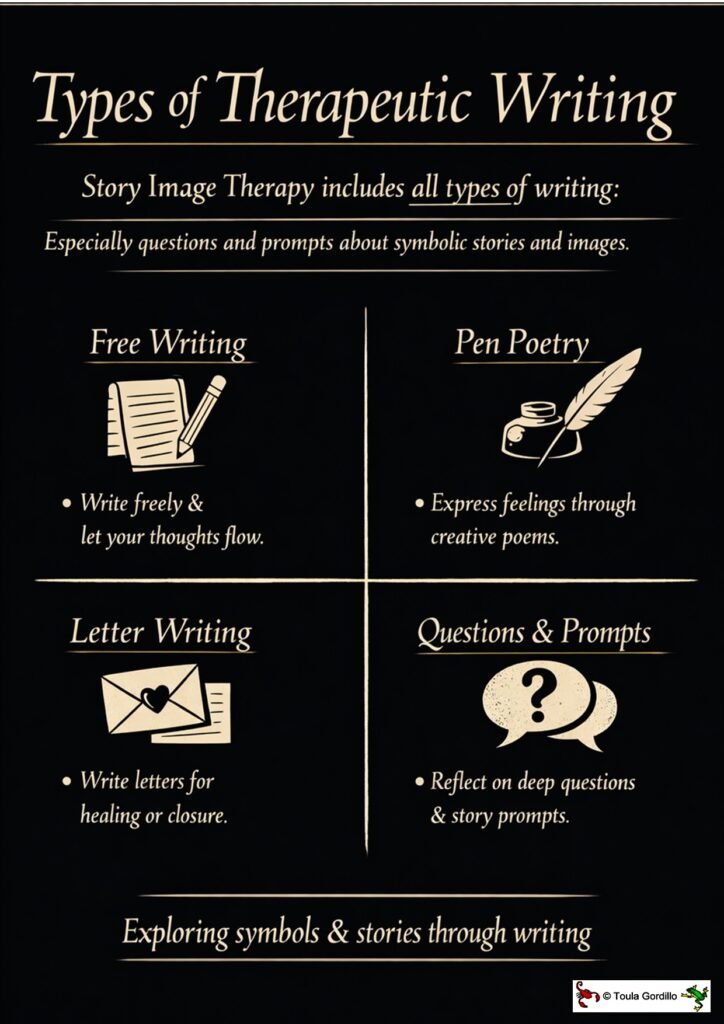 Story Image Therapy combines therapeutic reading and writing to support deeper self-understanding. As science shows that symbolic stories and images gently activate emotions, memories and unconscious patterns, this is why they are used as prompts for writing.